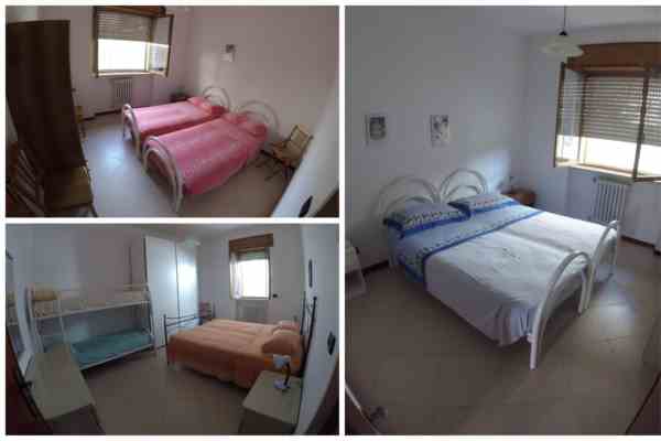 Tutte le camere da letto sono arredate con letto matrimoniale, comodini, armadio e cassetti, ventilatore e in una c'è anche un letto a castello e una cassettiera.