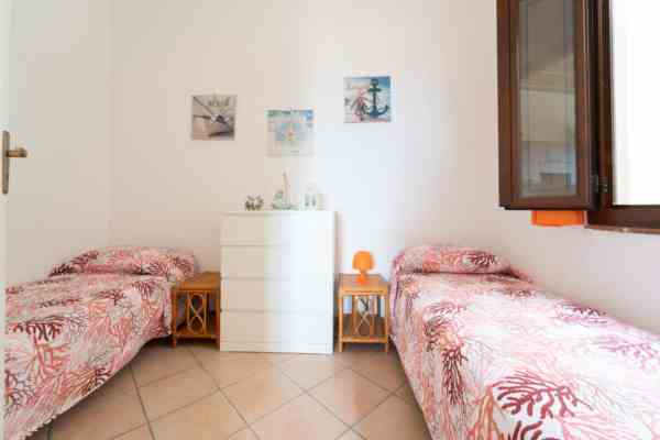 -cameretta con nr.2 letti singoli / doppio, dotata di ventilatore a colonna e finestra interna su vano scala aperto.