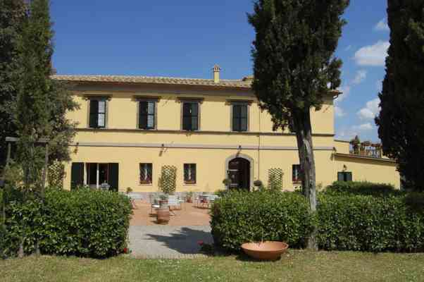 All'uscita del casello si volta a sinistra in direzione Sarteano da cui poi si seguiranno le indicazioni per Radicofani, all’incrocio con Celle sul Rigo si svolta a sinistra e fatti circa 2 km si trova sulla destra il viale di cipressi che porta alla villa.